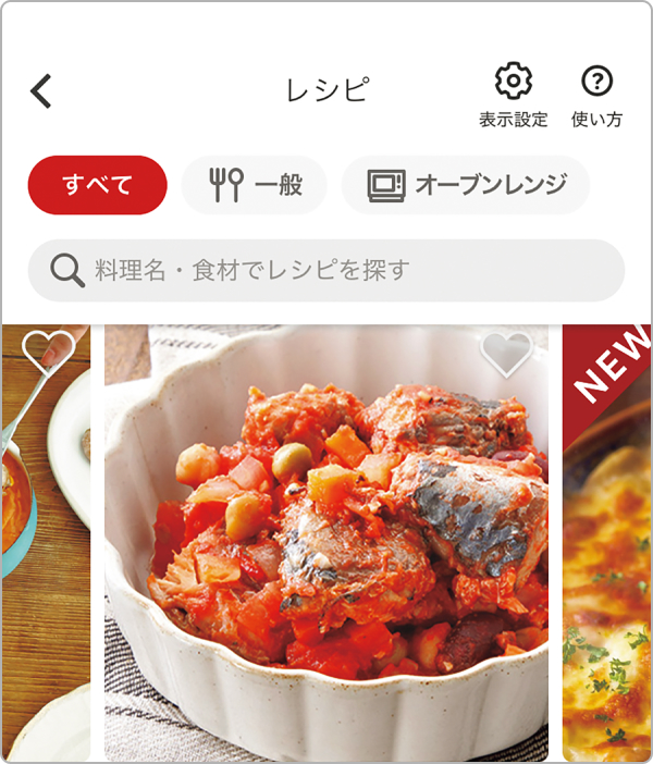 食材リストからのおすすめレシピや、季節にあわせたメニューなど様々な条件でレシピを探せます。