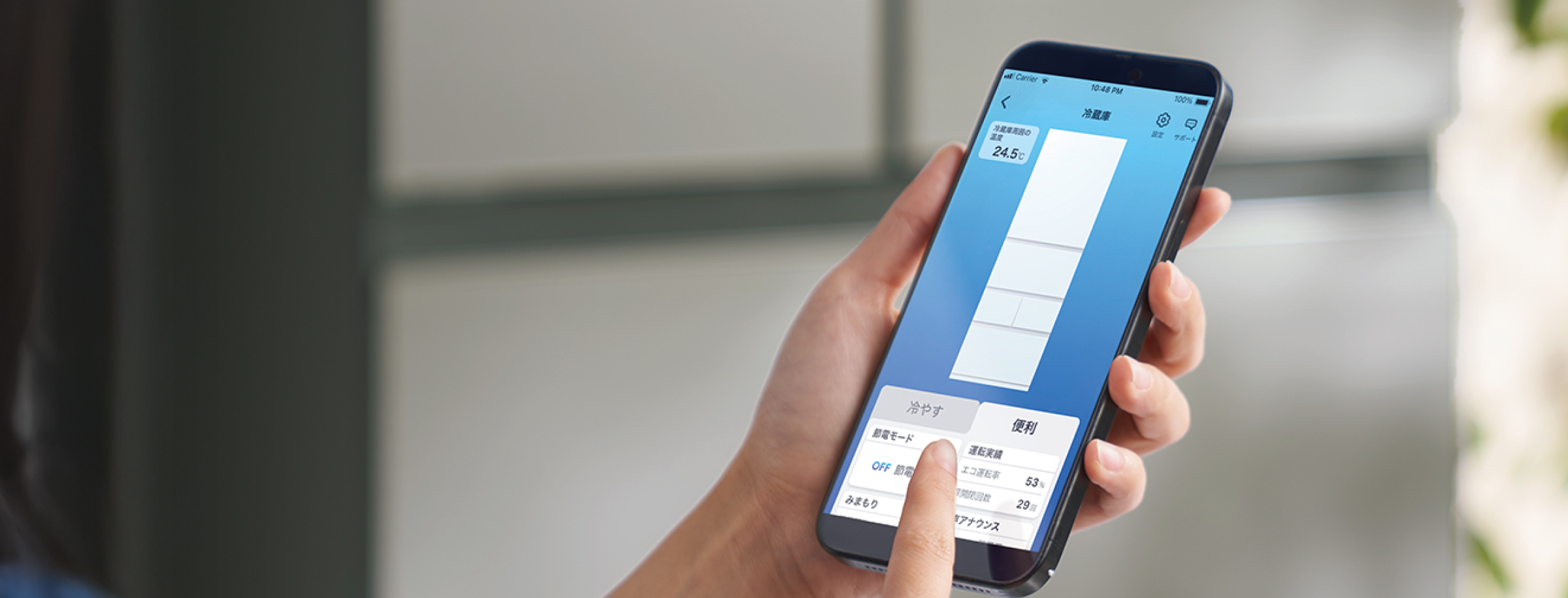 かってにエコモードに設定するだけでAIが使用パターンを学習。ご家庭ごとに最適な運転プランで省エネ運転を実現します。