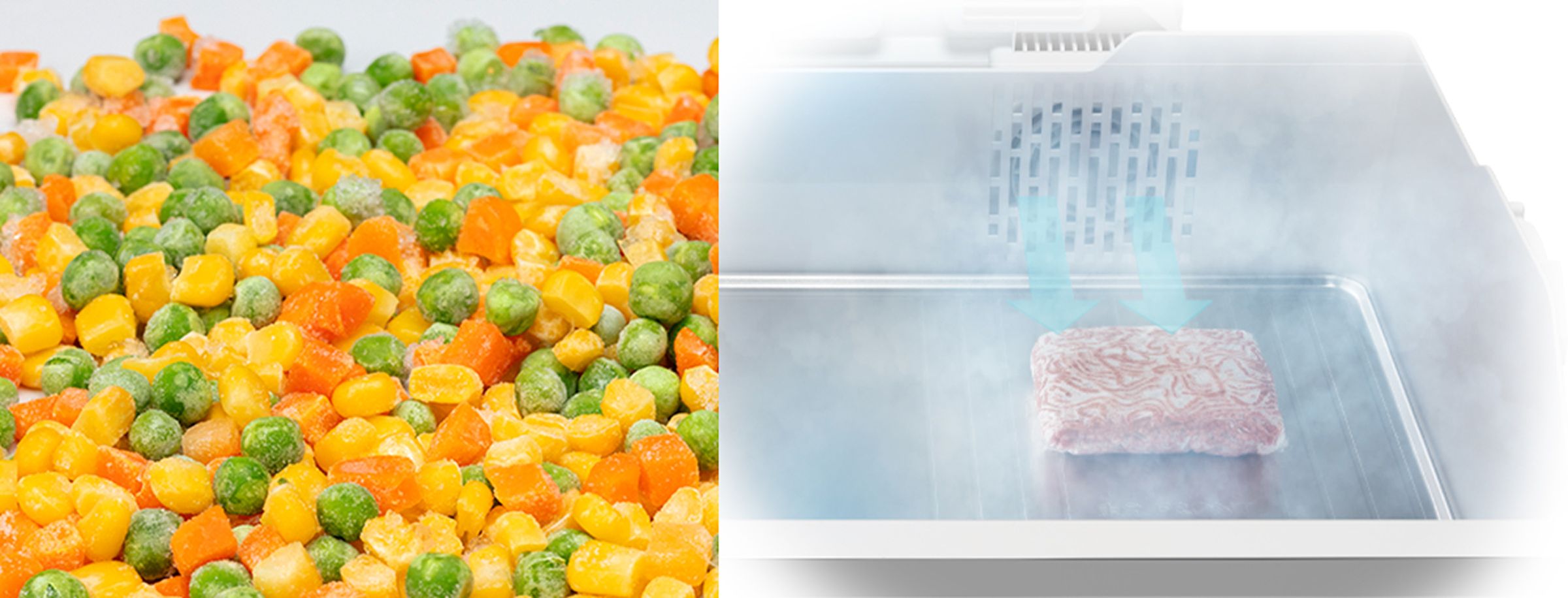 吹き出し口からの強力な冷気により、食材をおいしいまま素早く凍らせます。