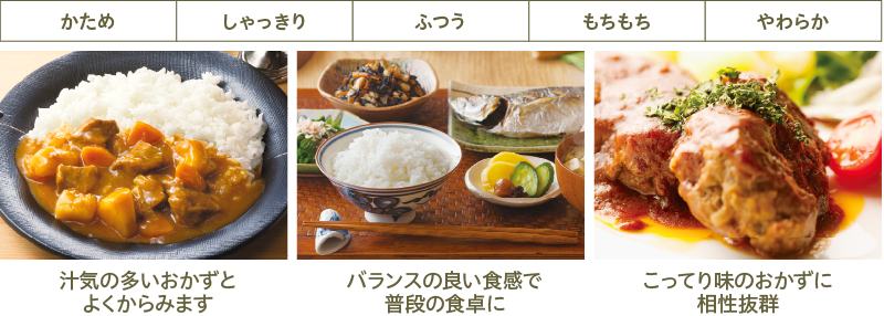 - ひとめぼれ:ほどよい粘りとやわらかさで、やさしい口当たり