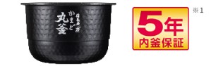【内釜5年保証】保証期間内に内側のフッ素樹脂コーティングがはがれた場合は新品とお取り替えいたします(取扱説明書の記載事項にそわない使い方をした場合は対象外となります)。